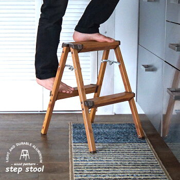 木目調ステップスツール Mサイズ(91067)【 スツール 脚立 折りたたみ おしゃれ 踏み台 ステップスツール ステップ踏み台 ステップ台 2段 子供 男前 インテリア 雑貨 ELEMENTS エレメンツ PC-402 】